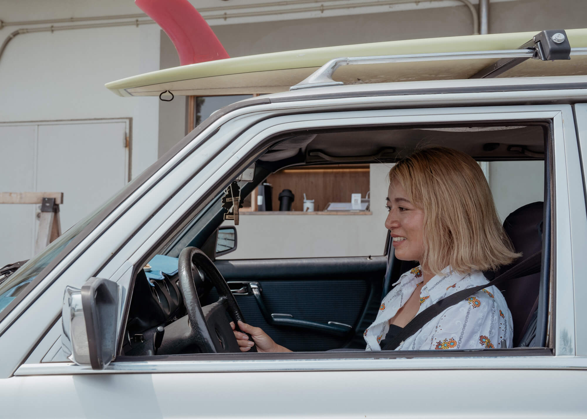 そんな心境の変化は、愛車へも影響した。彼女の新たな“パートナー”となったのが1983年式の「Mercedes-Benz S123」だ。自動車の整備士だった亡き父の影響で、幼い頃から乗りたいと思っていたステーションワゴン。レッカーされることに慣れるほどの不便さも、“可愛くなってきた”と愛せる心のゆとりは、今の暮らしだからこそ生まれたのだという。戻ってきた地元での肩肘はらない暮らしの中で出会った、懐かしい自分を映し出す1台。