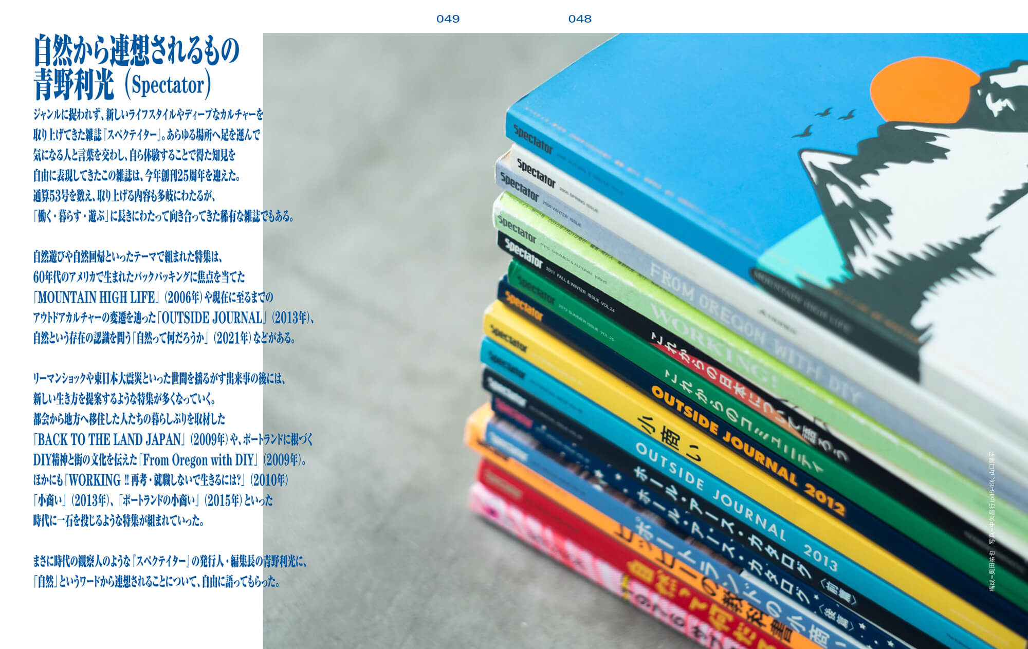 メディアの第一歩には、『SPECTATOR』編集長の青野利光さんの取材などがあった。