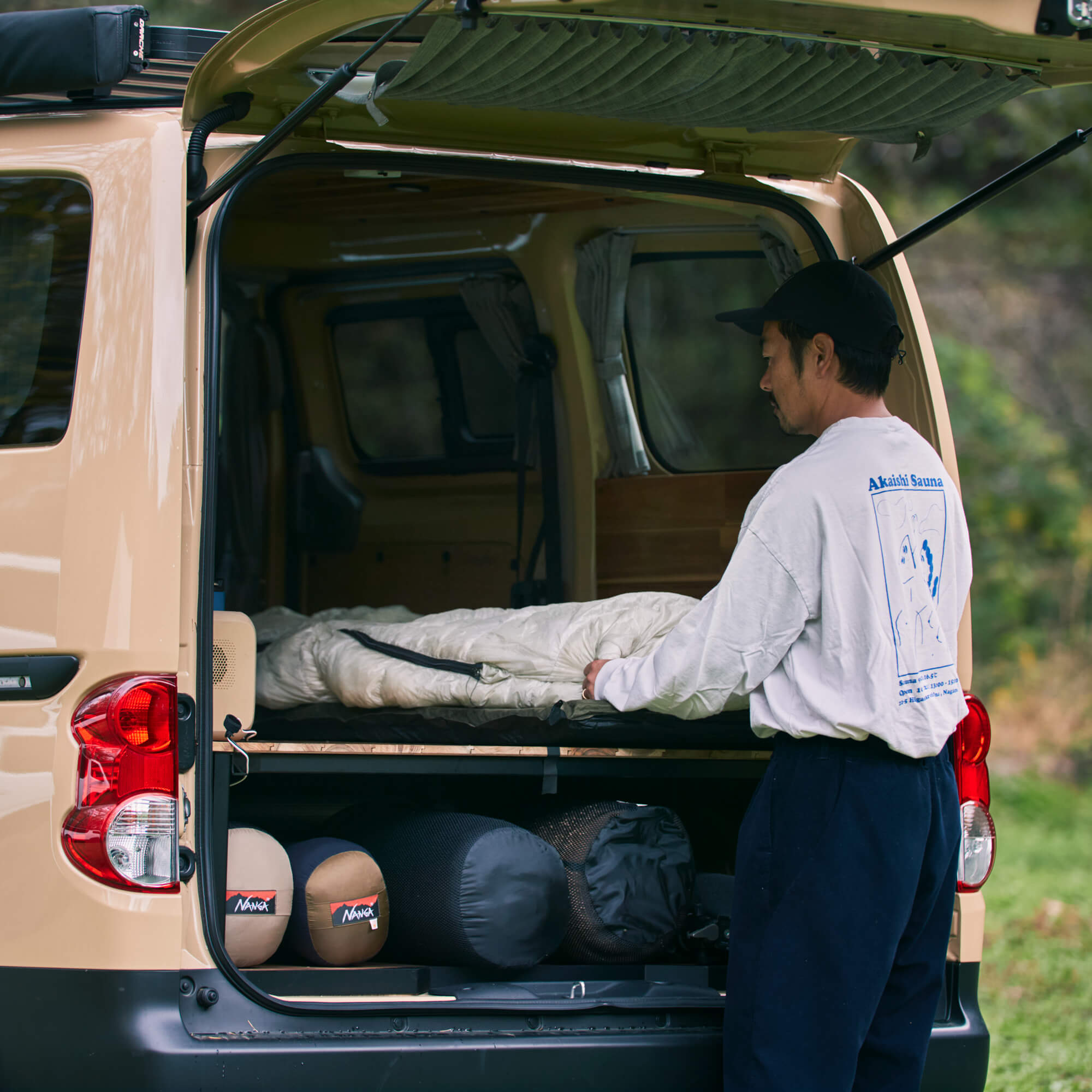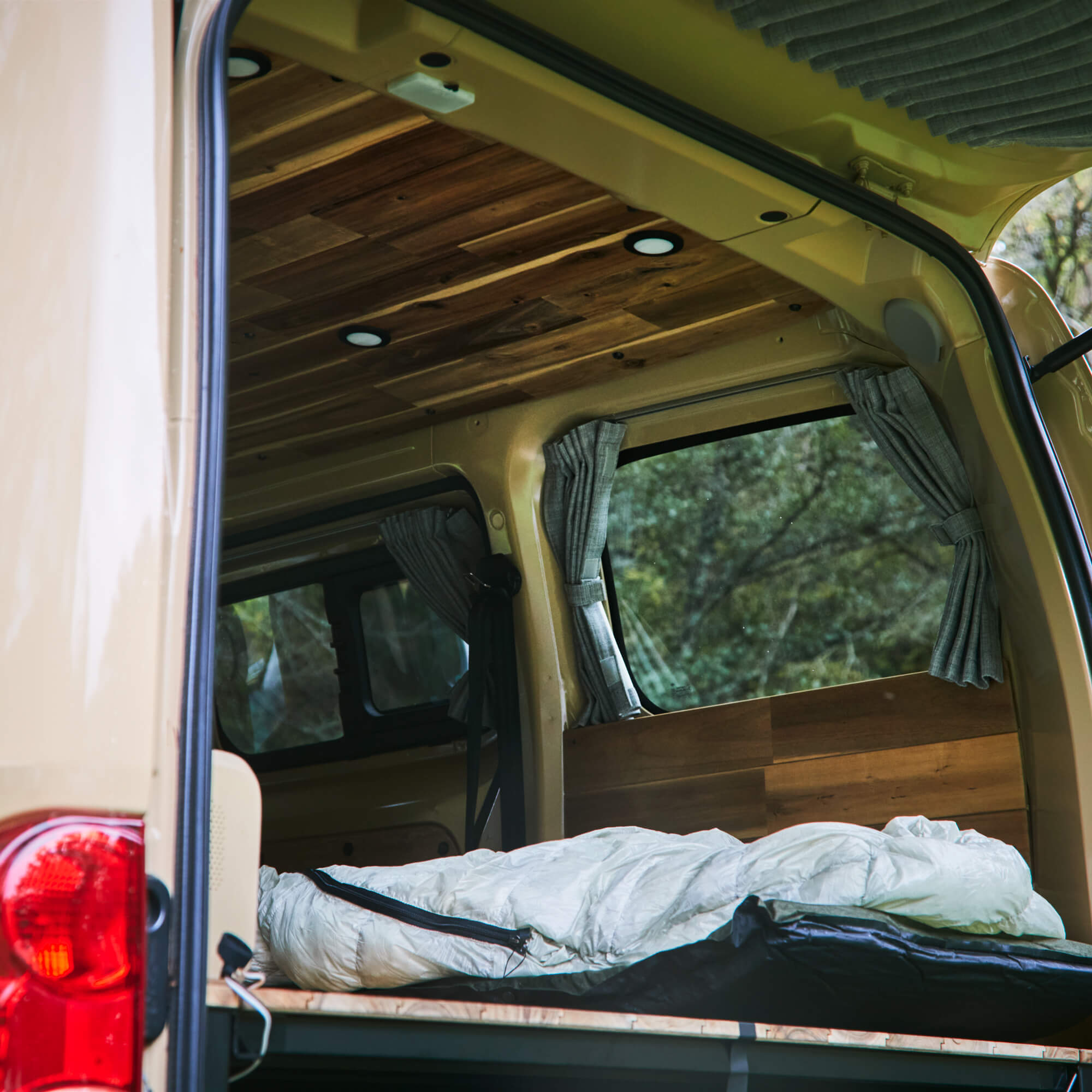 ハイエースやキャラバンなどと比べるとひと回り小さいということもあり、居住空間を楽しむというよりは“眠れる基地”という印象でしたが、男一人で寝袋とマットでぐっすり眠れました。僕のマイカーは日産テラノで、基本的に車中泊をすることはないので、車中で眠ることでクルマが一気に“部屋”化する、新体験でした。普段使いにも勝手がよく、旅へのフットワークが軽くなるようなクルマですね(noru編集部)」