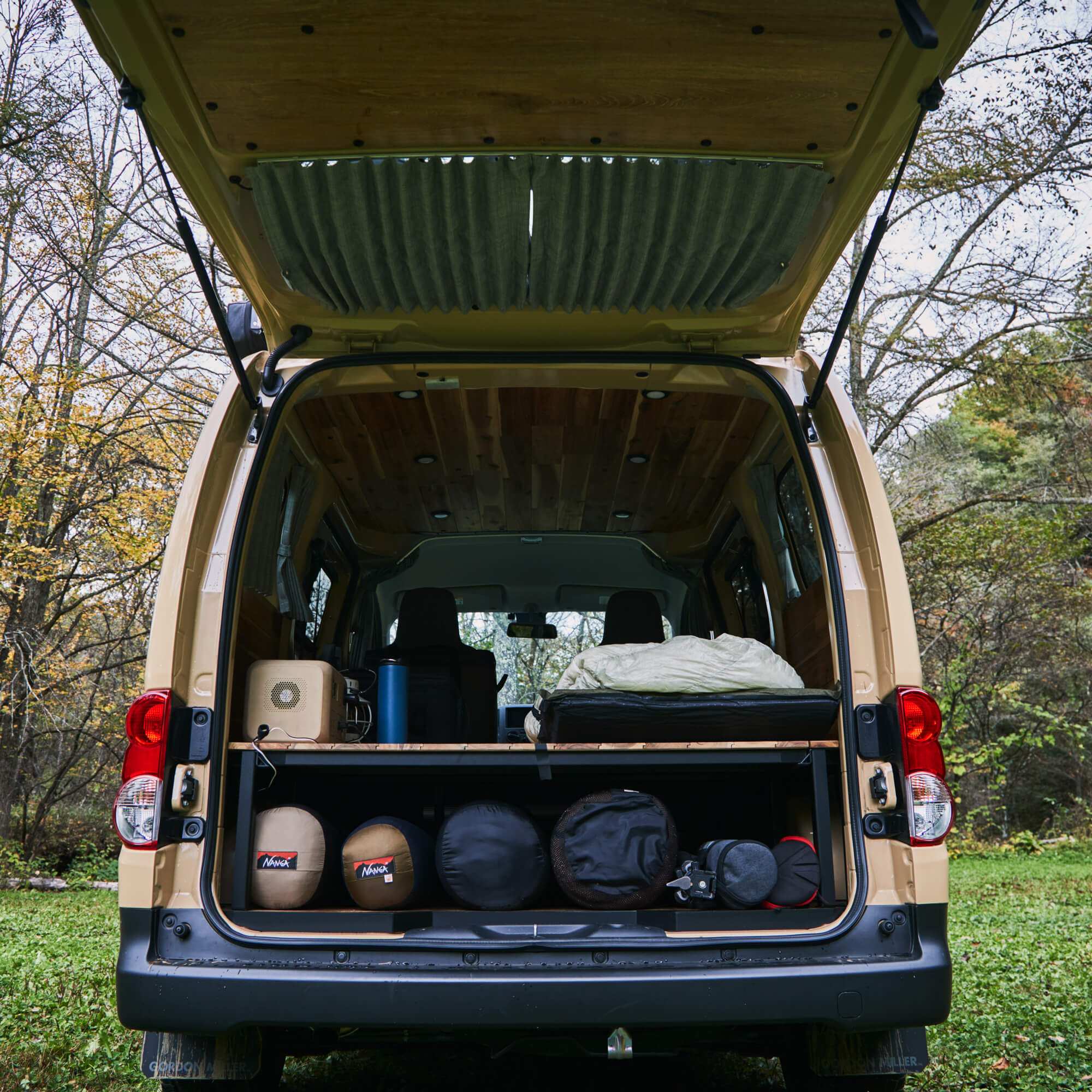 「東京から会場までの移動、イベント什器の運搬、滞在時の車中泊と、3つのシーンで編集部員が『GMLVAN V-02』をフルに活用させてもらいました。無垢のウッドに包まれた空間は居心地がよく、テーブルモードではデスクワークも快適。ベッドモードにすればすぐに休息できて、移動と滞在の境が自然に溶け合う感覚が新鮮でした。荷室容量も十分で、イベントの備品を積んでも余裕があり、次はこのままキャンプにも出かけたくなるような1台でした」(noru編集部)
