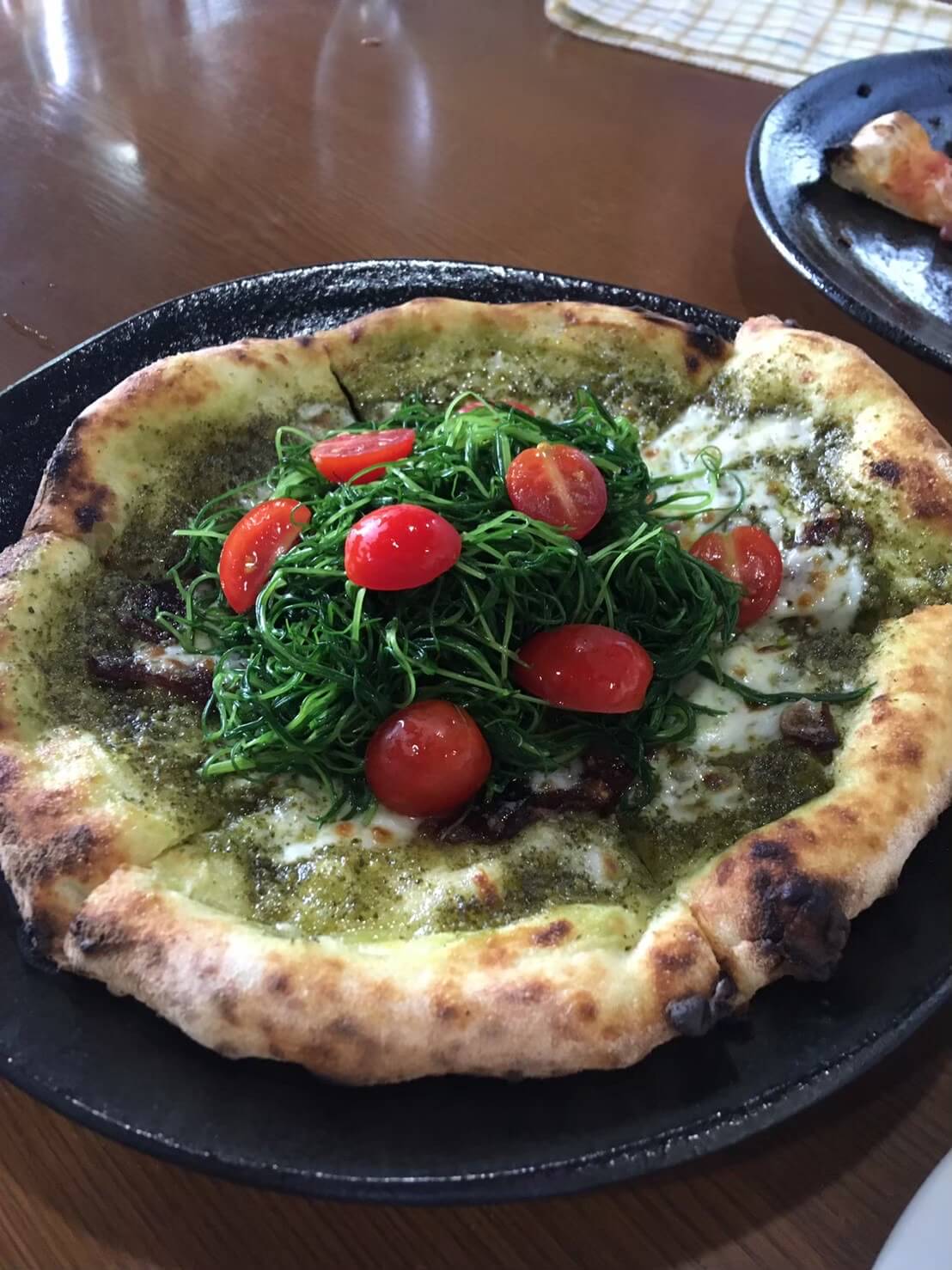 産地の果実の酵母などを使ったピザを提供する〈桜丸〉さん。以前は蕎麦屋さんだったという広い民家を改装した店内からは、座敷のような席もあり開放的。定番のマルゲリータなどのピザから、おかひじきを使った山形らしいピザまで、幅広いメニューが楽しめるので何度訪れても飽きない。ピザというとジャンキーなイメージを想像するけれど、もちもちの生地に素材の味がやさしい桜丸さんのピザは、身体に染み渡るような美味しさがある。YMWをはじめ県内のワイナリーのワインも取り扱っているので、ボトルとピザを大人数でシェアするのがおすすめ。