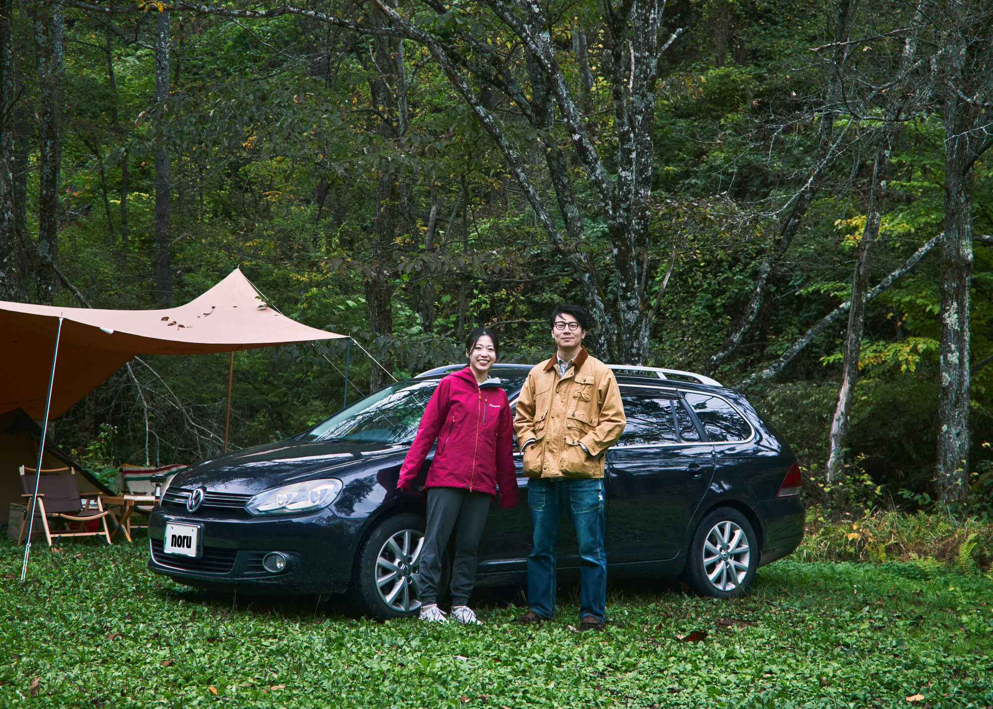 自然の中に溶け込むような穏やかなサイトにて、夫婦ふたりでキャンプを楽しんでいた鈴木純平さんは、noru journalの執筆にも関わるフリーの編集・ライター。カルチャー、ファッション、住宅、ライフスタイルなど、幅広いジャンルの雑誌やWeb、企業カタログを手がけるが、実務の約半分はアウトドア関係だという。取材や撮影で山や海のフィールドにクルマで出ることが多く、私生活では夫婦で日本百名山の登頂を目指しはじめたところ。長距離移動は日常茶飯事で、雪のない季節は県外の山へ、雪が降ればスキーでゲレンデへ向かう。また、キャンプ、フライフィッシング、カヤック、狩猟など、気になる外遊びにはひとまず手を伸ばして挑戦。“なんでも影響されやすいタイプで、知らない知識や経験に出会うとすぐ興味が湧いちゃうんです”と、広く浅くなっても、まずは楽しむことをモットーにしているという。
