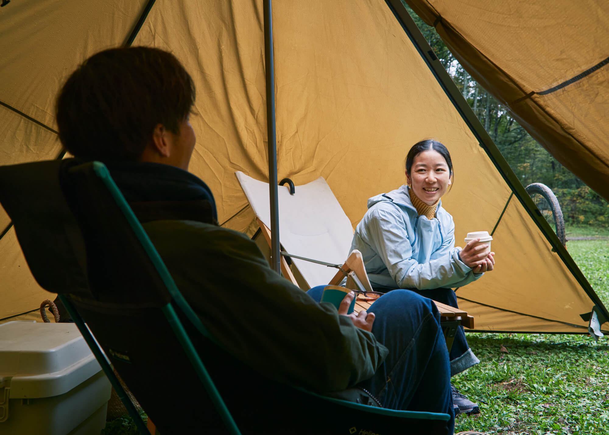 「NEST CARAVAN 2025」が行われた川上村から、八ヶ岳を挟んだ反対側、その麓の茅野市に暮らす小泉遥菜さんと小泉直樹さんご夫婦。トレイルランニングをライフワークとするふたりは、取材日の前週までの半月ほどメキシコに滞在し、トレランレースに参加していたという筋金入りだ。ふだんは、遥菜さんが茅野発のブランド〈yaso〉で森の間伐材を用いたフレグランスの企画開発を担当。直樹さんは東京のIT企業に勤めて、リモートワークを軸に週の半分を上京する二拠点生活。そんな多忙な日々のなかでも、メーカーからのサポートを受けるほど本気でトレランに打ち込んでいる。