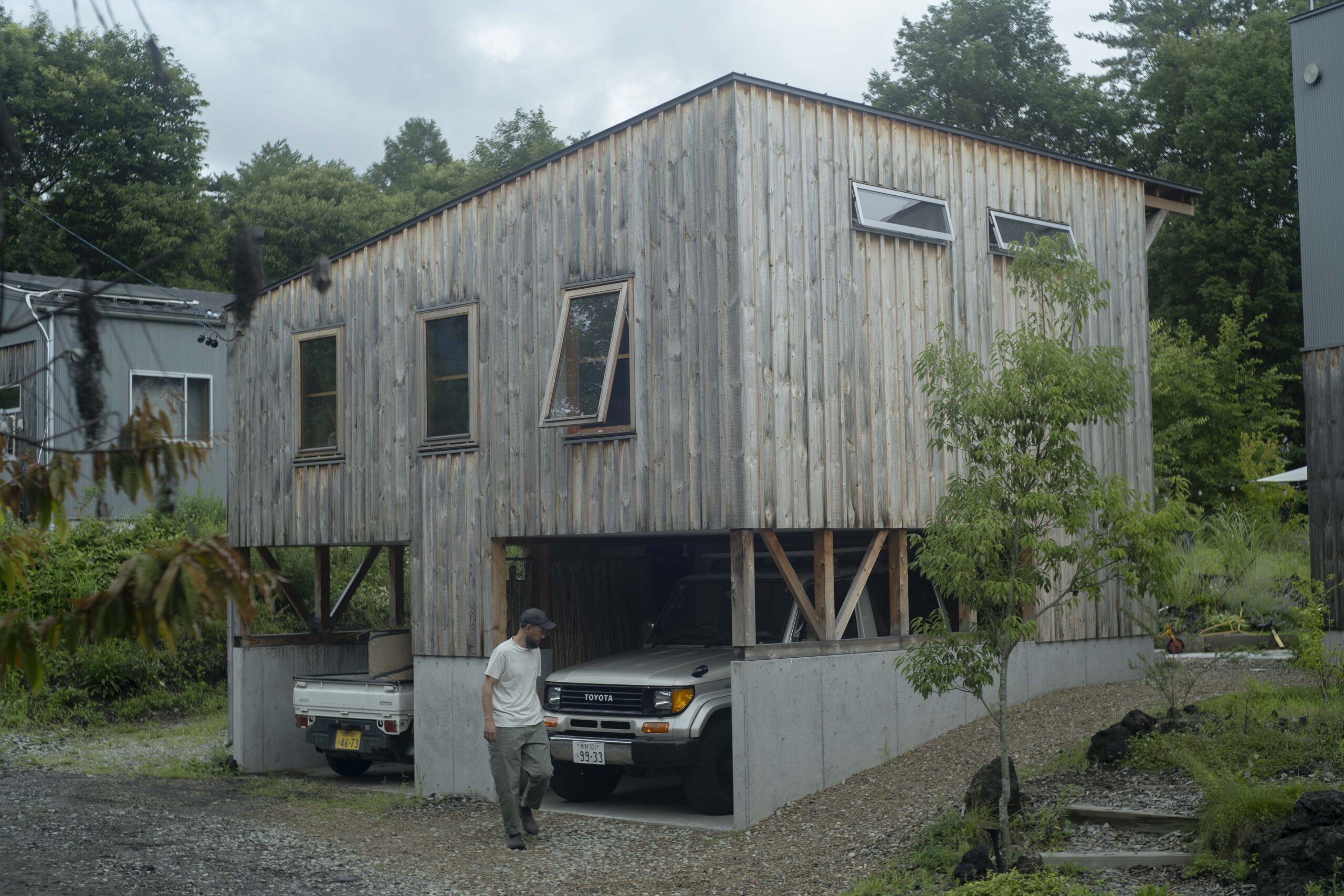 「大学の学期中は、月曜日から水曜日までを東京で過ごし、木曜日から週末を御代田町で生活をしています。月曜日の朝5時くらいに自宅を出て、8時ごろに学校に着く。電車だと軽井沢か佐久平まで行って新幹線に乗り、在来線に乗り継いで、さらに最寄り駅から学校までも遠いんですよ。木材を運んだり荷物も多かったり、クルマのほうが圧倒的に便利ですね。冬場は授業で出た端材を持ち帰って薪にしたりするので」