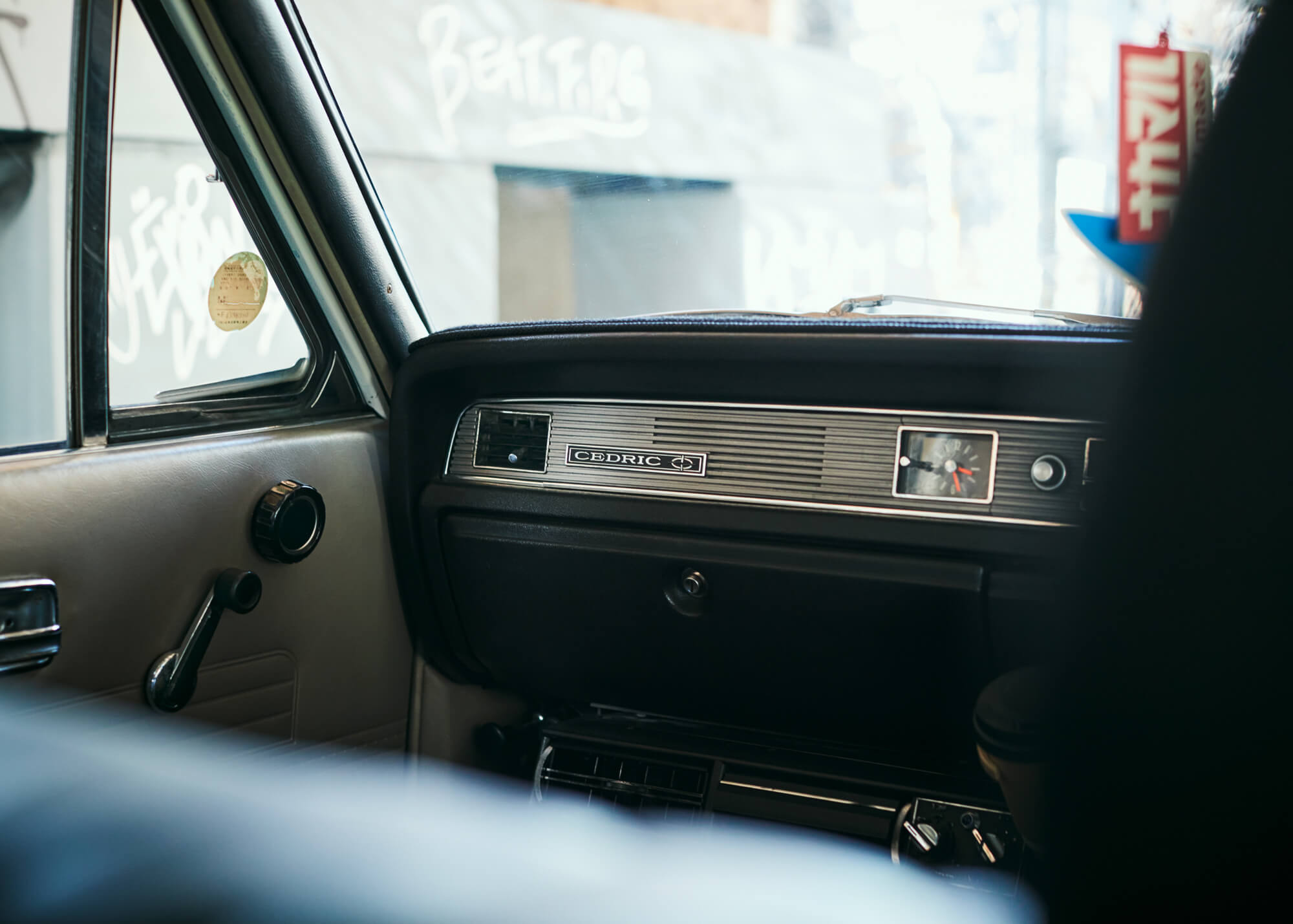 これまでにカフェやバー、ギャラリーなども運営し、美容師という垣根を越えた精力的な活動で自身のクリエイティビティを発揮してきた橋本さん。最近では、釣りやキャンプに加えて、ヴィンテージのフィルムカメラに傾倒。写真学校に通うほど夢中となり、仕事でのヘアモデル撮影以外にも、プライベートでポートレートや風景の撮影を行っている。そんな多趣味な橋本さんの現在の愛車は「NISSANセドリック ワゴン」。決め手は、その無骨なフォルムとヴィンテージカーらしいデザインにロマンを感じたから。状態の良い中古車は希少なモデルということもあり、タイミング良く出会った際に運命を感じ、即購入を決断した。燃費の悪さや故障しやすいウィークポイントはありながらも、手間暇かけて自らの手でメンテナンスしていくことで愛着も増し、クルマへの理解も深まっていく。